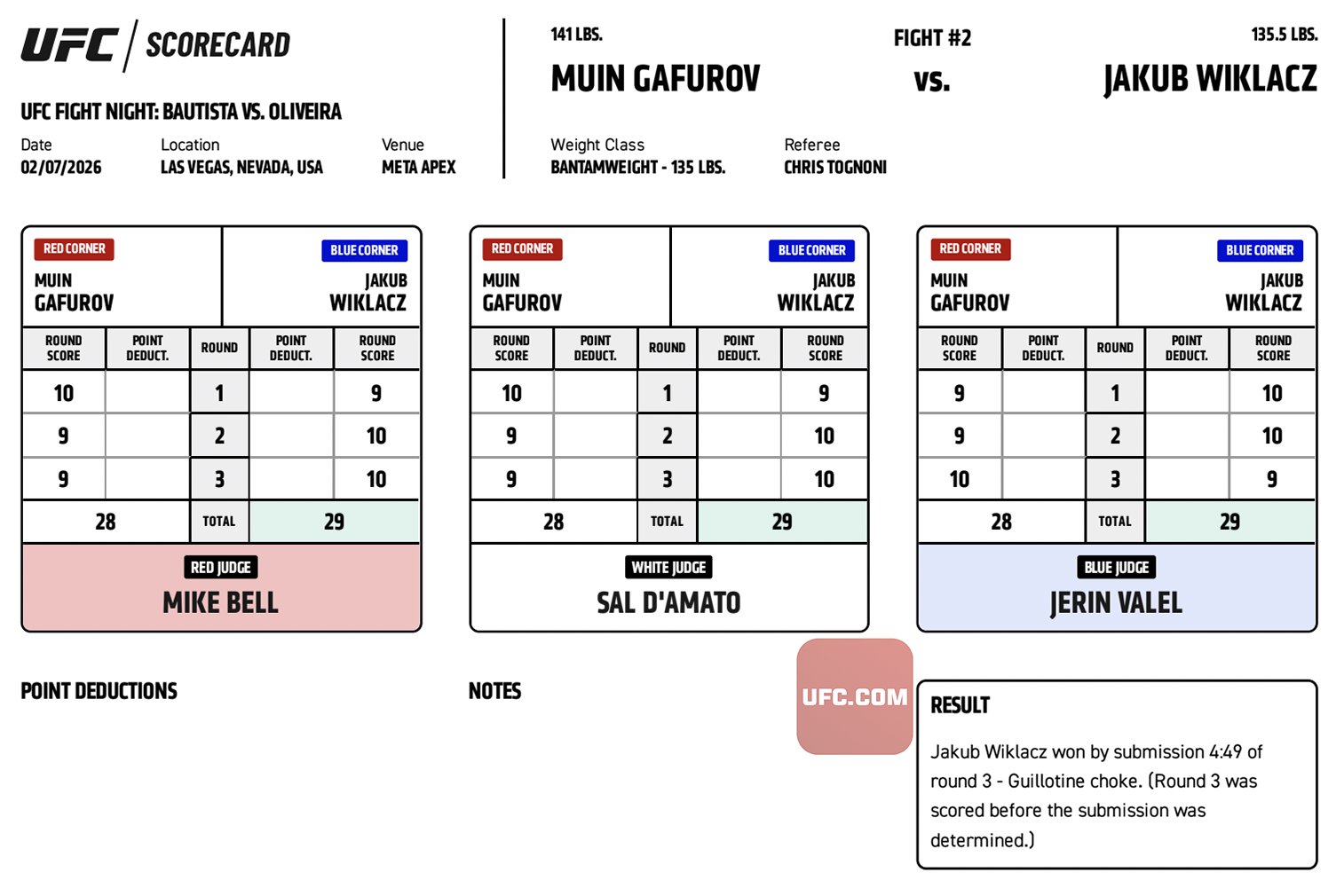 SUB Guillotine Choke - Round : 3, 4:59 | |||