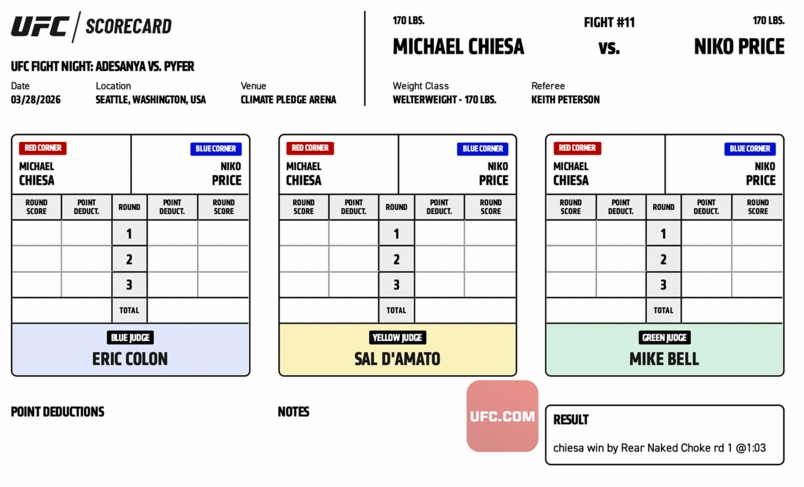 UFC FIGHT NIGHT 271 - Michael Chiesa vs. Niko Price