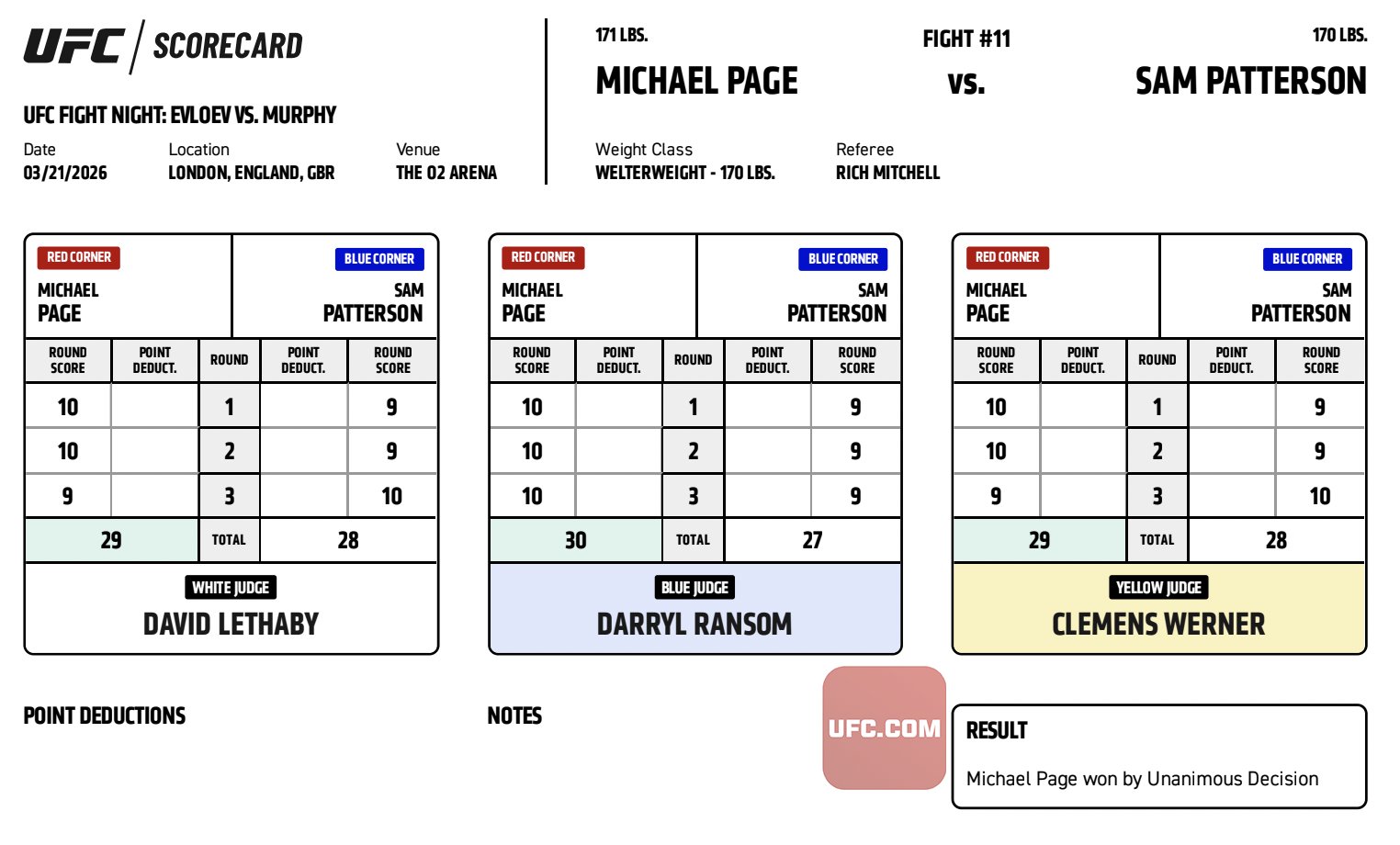 UFC FIGHT NIGHT 270 - Michael Page vs. Sam Patterson